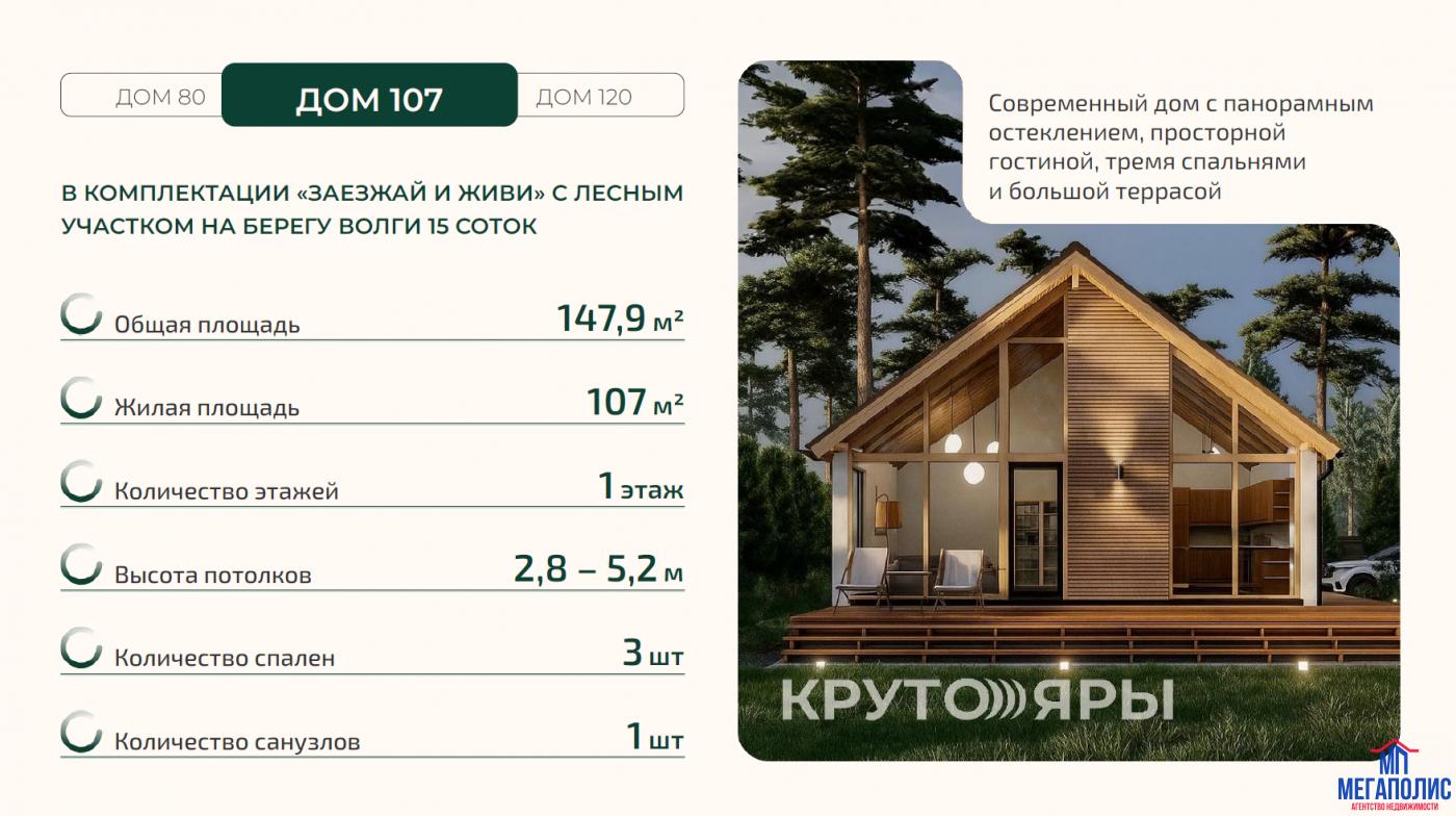 Превосходное предложение для тех, кому нужна тишина, дома в едином стиле, централизованное обслуживание территории, а так же выход к реке Волга и лес. Уникальный экопоселок "Крутояры".Дома заводского производства. Очень энергоэффективные.